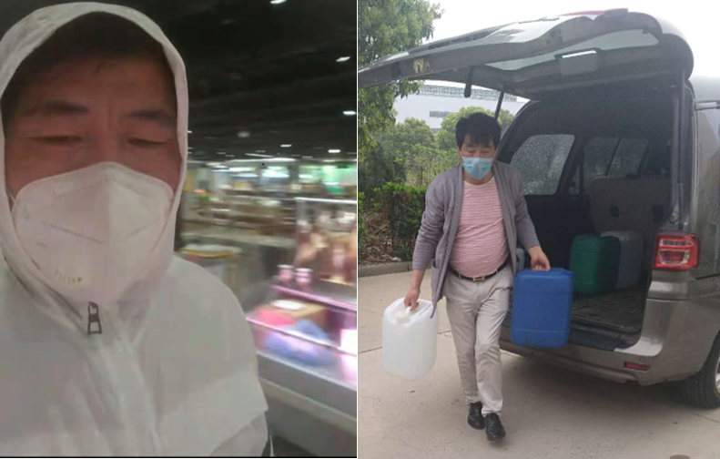 方雄文正在為工業(yè)園區(qū)各企業(yè)留守人員購買生活物質(zhì)并將采購的防疫物質(zhì)