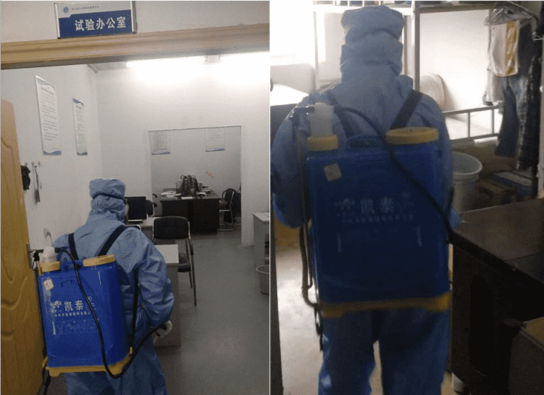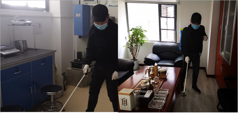 輕工工程公司孝感分場所試驗室、辦公室、員工宿舍消毒,為復(fù)工復(fù)產(chǎn)做準(zhǔn)備